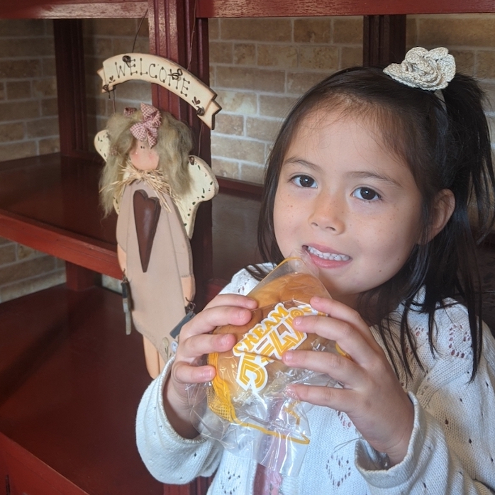人気の油パン、クリームパン他お土産にも人気のエクレアは、なんと子供の足と同じ程の15センチ!